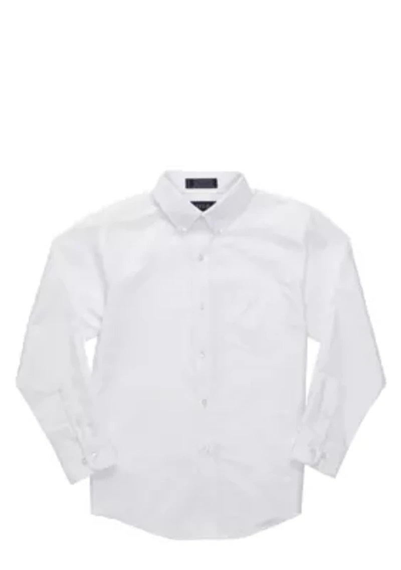 This shirt features button front, chest pocket and 2 button collar. Long sleeves Made In El Salvador Imported Material & Care Cotton/Polyester Machine Washable