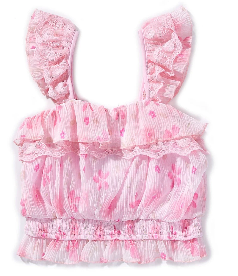 Hannah Banana Big Girls Floral Lace Flutter Sleeve Smocked Waist Peasant Top
