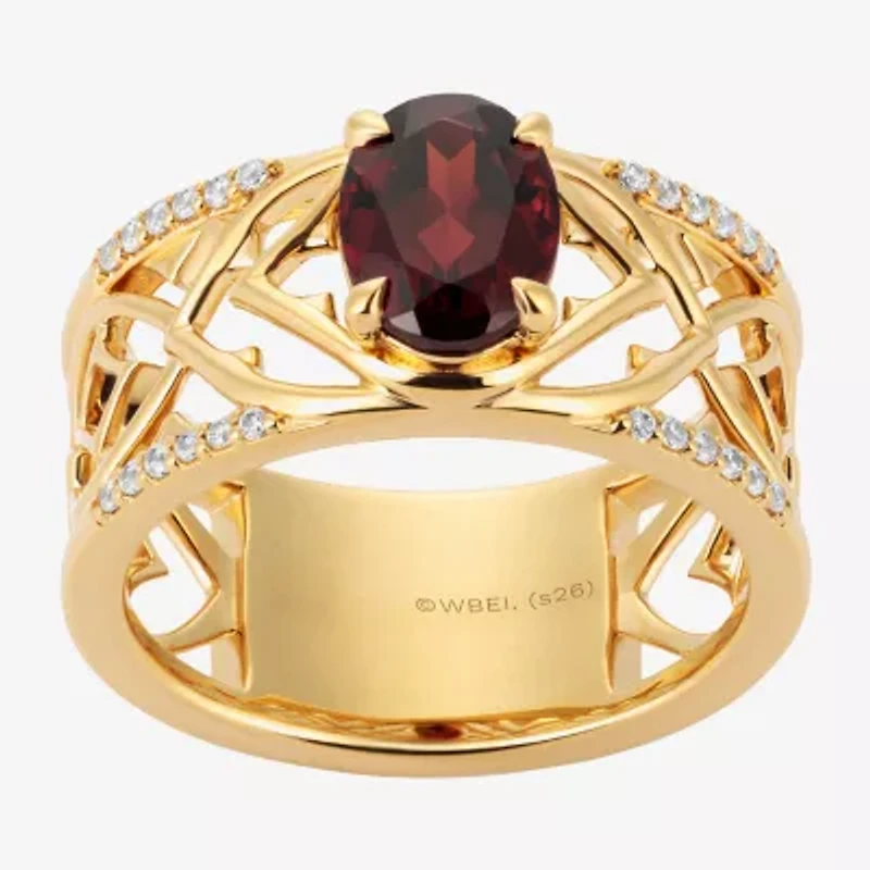Harry Potter (F/Si2) Womens 1/10 CT. T.W. Lab Grown Diamond Genuine Red Garnet 14K Gold Over Silver Cocktail Ring