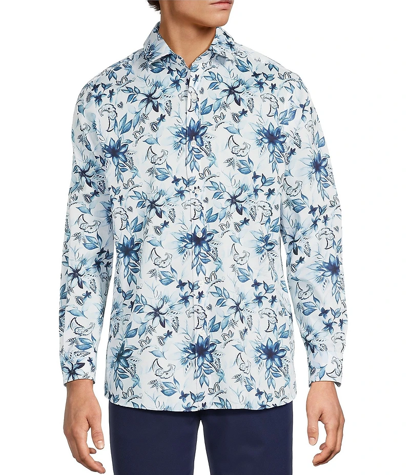 Hart Schaffner Marx Long Sleeve Large Floral Print Coat Front Shirt