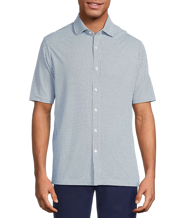 Hart Schaffner Marx Luxury Performance Short Sleeve Dash Geo Coat Front Shirt