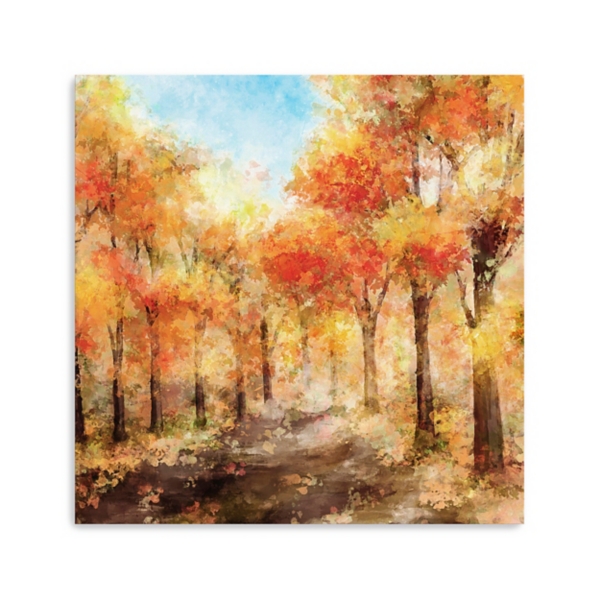 Beaming with bright oranges and yellows, this Harvest Glow Canvas Art Print captures the spirit of fall. It will make your walls come to life this season! Overall dimensions Width: 40" Depth: 1.25" Height: 40" Giclee printed on stretched canvas Wrapped edges complete the look Features autumn trees Hues of yellow, orange, brown, blue, and white Artist: Diki Dorr Diep Weight: 11 lbs. Hangs from back-mounted hardware Care: Dust with a soft, dry cloth. Avoid exposure to heat, sunlight, and moisture. This item is available at Kirklands.com only, not available in stores. Please note: this item cannot be shipped to APO/FPO addresses.