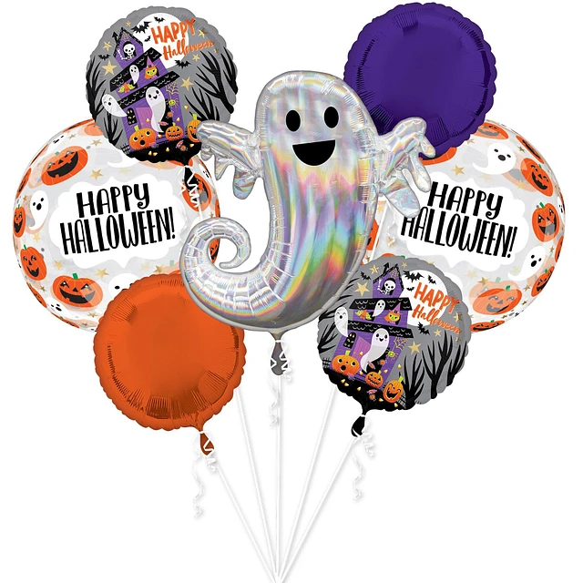 Haunted House Halloween Foil & Plastic Balloon Bouquet, 7pc