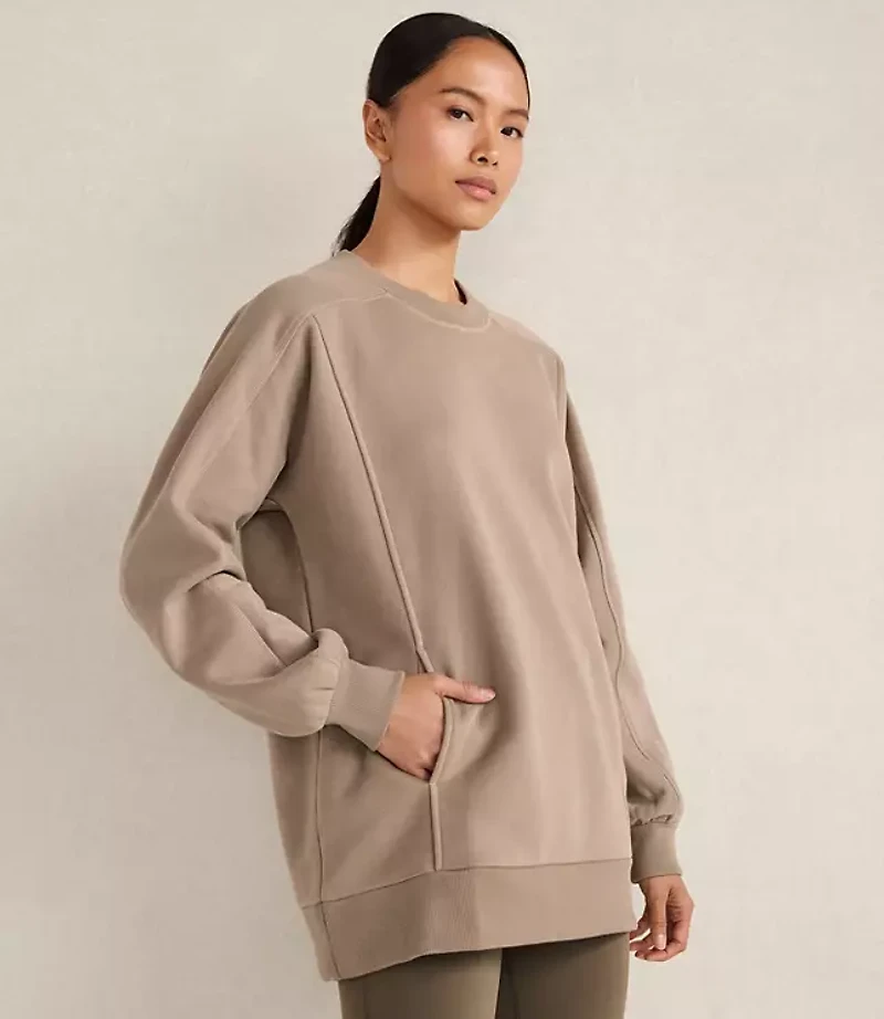Haven Well Within. A thoughtful collection of lounge, sleep home and lifestyle essentials your trusted resource for all things wellbeing. The softest escape. This grounding, off - duty sweatshirt is made with emphasized seams and a roomy front pocket for a look that says: do not disturb. Pair it with smooth leggings and cashmere socks., Hit: Hits below hip, Imported:, Length: 29"long, Fabrication: 66% Organically Grown Cotton 34% Polyester, Garment Care: Machine Washable Loft Haven Well Within Cloud Fleece Crewneck Sweatshirt Size XS North Sea Blue Women's by Loft Size Regular - XS North Sea Blue Women's Cotton, Blend Crew Neck Long Sleeve Pullover Tops Casual 66% Organically Grown Cotton 34% Polyester Machine Washable