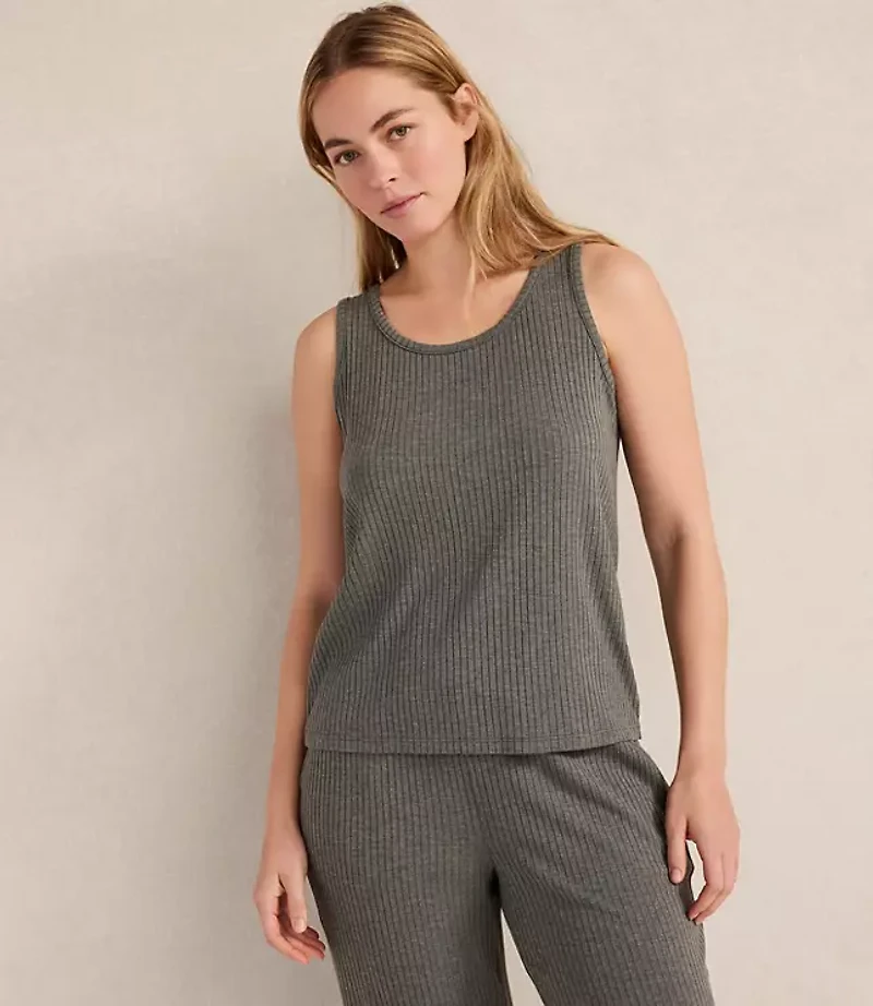 Haven Well Within. A thoughtful collection of lounge, sleep home and lifestyle essentials your trusted resource for all things wellbeing. Get ready to dream in this scoop neck tank. Made from unbelievably soft ribbed modal, this tank offers an easy drape, flattering scoop neck and comfort that moves with you from restful nights to effortless mornings., Bullet1: Hits at hip, Bullet2: 24"long, Imported: Loft Haven Well Within Drapey Rib Knit Scoop Neck Tank Top Size XS Cypress Women's by Loft Size Regular - XS Cypress Women's Sleepwear, Casual