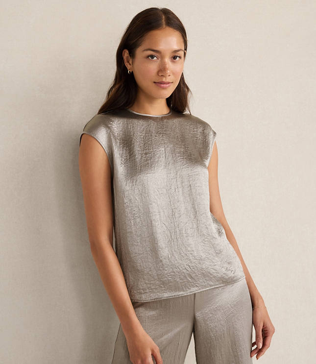 Haven Well Within. A thoughtful collection of lounge, sleep home and lifestyle essentials your trusted resource for all things wellbeing. All set to glow. This lustrous top is effortlessly chic with a relaxed, crinkled texture. Make it a radiant set with the matching pants. Invisible zipper, Hit: Hits at hip, Imported:, Length: 23"long, Fabrication: 100% Acetate, Garment Care: Hand Wash Loft Haven Well Within Luxe Crinkle Shine Top Size Small Tan Women's by Loft Size Regular - S Tan Women's Crew, Neck Sleeveless Tees Tops Casual 100% Acetate Hand Wash