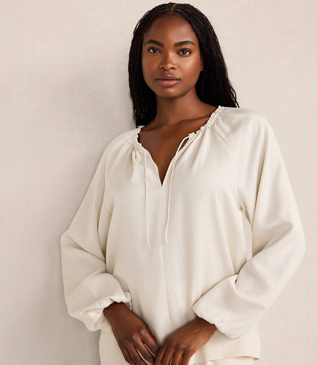 Haven Well Within. A thoughtful collection of lounge, sleep home and lifestyle essentials your trusted resource for all things wellbeing. Slow down in the billowy comfort of this split neck top. The washed fabric gives it a relaxed, lived - in feel from the very first wear. Pair it with the matching lounge pants for an ultra - chic set., Hit: Hits at hip, Imported:, Length: 25"long, Fabrication: 100% Tencel Lyocell, Garment Care: Machine Washable Loft Haven Well Within Washed Split Neck Top Size XS Full Moon Grey Women's by Loft Size Regular - XS Full Moon Grey Women's Split, Neck Long Sleeve Pullover Tops Casual 100% Tencel Lyocell Machine Washable