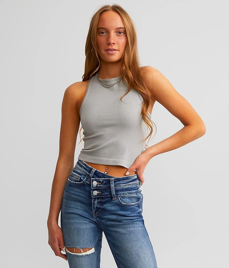 High neck ribbed stretch bralette Bust measures 25" on size XS/S Body length 15 1/4" on size XS/S Please note there will be a color variance with each piece Model Info: Height: 5'7" | Bust: 32" | Waist: 24 1/2" | Hip: 35 1/2" | Wearing Size: XS/S