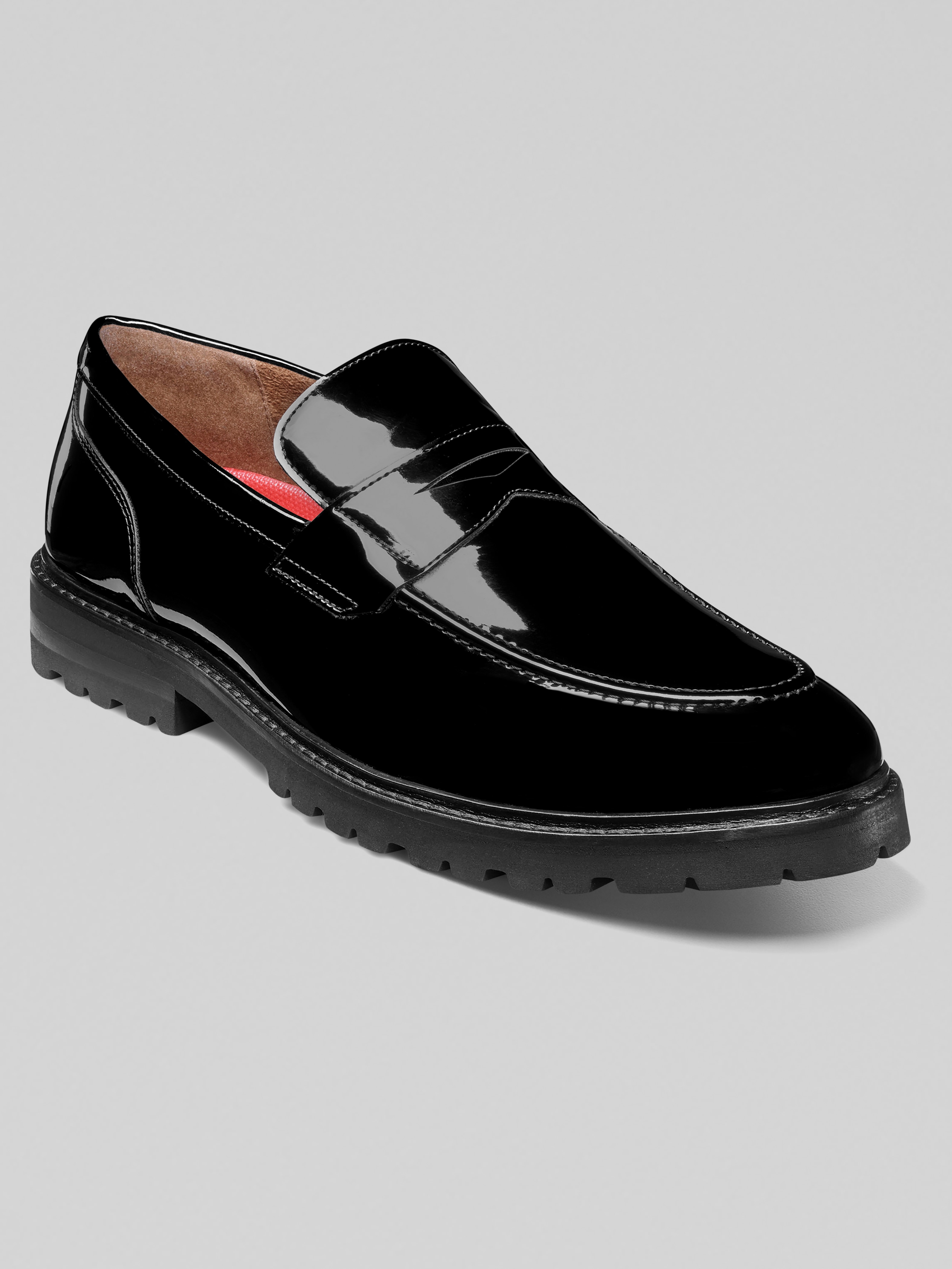 Bring bold energy to your look with these Stacy Adams penny loafers. A high-shine patent upper and chunky modern sole make them a standout choice for dressing up your everyday style. Inside, microfiber linings and the RedZone cushioned footbedcomplete with molded heel cup and anatomical arch supportensure comfort with every step. Finished with a lightweight EVA sole for added ease and durability.