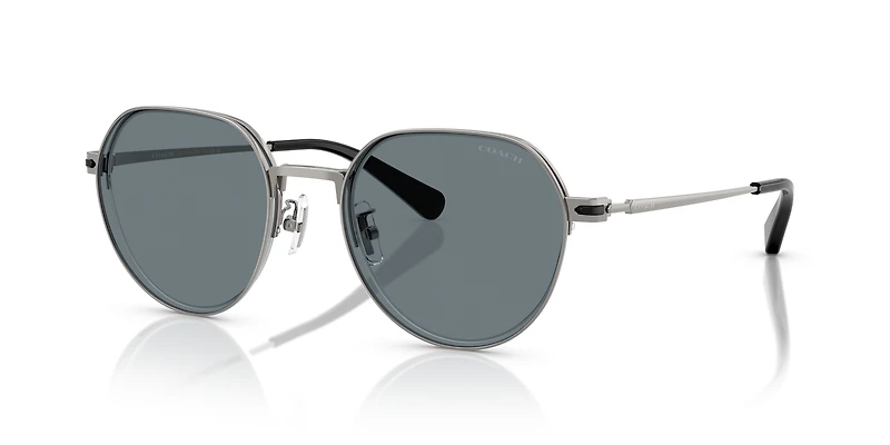 Elevate your style with the Coach HC7179 CAE81 sunglasses, designed to make a statement. The irregular frames in sleek grey add a modern edge, while full-rim construction delivers bold definition. Crafted from lightweight metal and equipped with adjustable nose pads, they offer a comfortable fit all day. Mirrored lenses in grey reduce glare and reflect light with a metallic finish. Complete with advanced UVA/UVB protection and a blue-light filtering feature, these Coach sunglasses seamlessly blend fashion and function.
