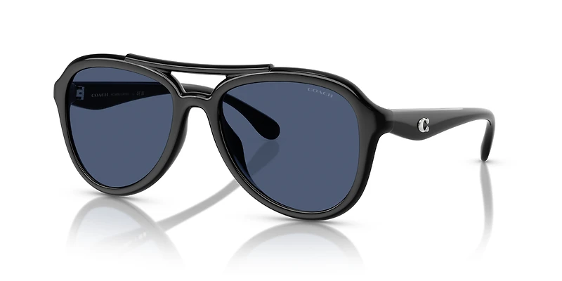 Elevate your style with the Coach HC8406U CW183 sunglasses. Featuring bold black sunglasses with full-rim frames crafted from nylon and propionate, these pilot-shaped lenses exude timeless charm. The design is finished with a sleek saddle bridge and offers universal fit comfort. Classic blue lenses provide advanced UVA/UVB protection, making these Coach sunglasses a perfect blend of sophistication and practicality.