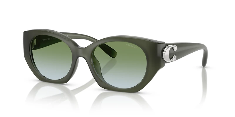 Discover effortless sophistication with the Coach HC8407U CW194 sunglasses. Featuring oval frames crafted from durable nylon and propionate, they exude timeless charm with soft, rounded contours. The green lenses, enhanced by a gradient treatment, offer advanced UVA/UVB protection. Complemented by a green full-rim design and injected temples, these Coach sunglasses are perfect for adding a chic touch to any outfit. Designed with a universal fit for versatile appeal.