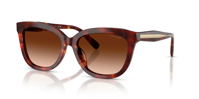Elevate your everyday style with the Coach HC8453U CDP53 sunglasses. These Coach sunglasses feature square frames crafted from tortoise acetate, exuding a modern and structured elegance. Brown gradient lenses provide effortless sophistication while blending beautifully with the rich tones of the design. The temples feature luxurious bi-layer acetate detailing and a shiny light gold metal core wire, adding a touch of New York-inspired luxury. Perfect for all-day wear, these sunglasses with a universal fit are a must-have.
