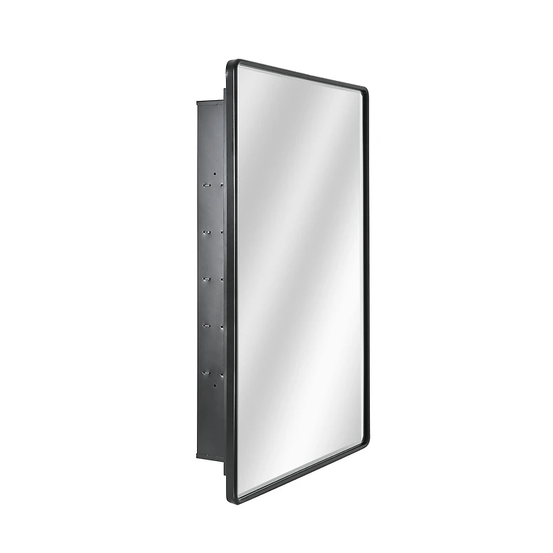 Enhance your bathroom's functionality and style with the Head West Mirror's black metal recessed medicine cabinet mirror. This modern and sleek bathroom medicine cabinet combines storage and elegance, making it a perfect addition to any contemporary bathroom. With its recessed design, this bathroom mirror cabinet for over the sink blends effortlessly into the wall, providing a clean and uncluttered look.