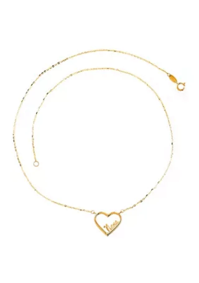 Script Initial Heart Necklace 10K Yellow Gold 18"