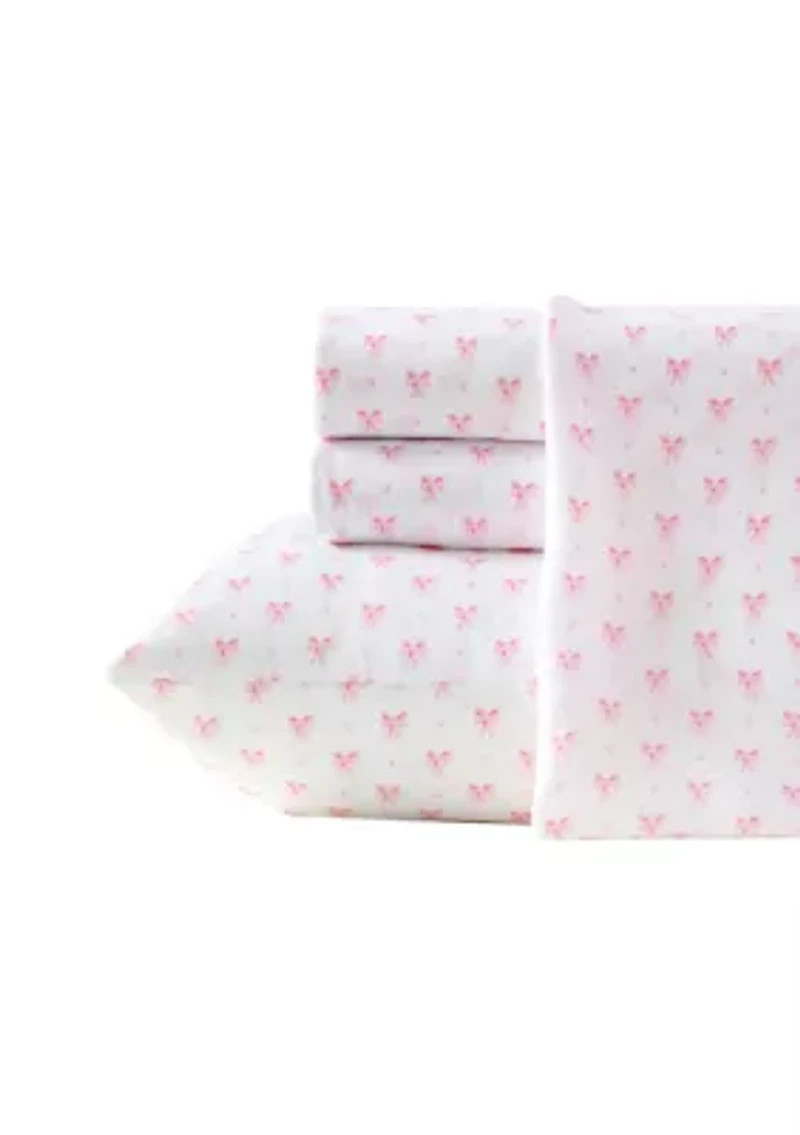 Transform your bedroom into a serene sanctuary with the Laura Ashley heart of mine light pink sheet set. Featuring a delicate heart motif in soft pink tones set against a light ground, this print captures the graceful charm and romantic inspiration that define the Laura Ashley heritage. Crafted from smooth microfiber, the sheets feel soft and lightweight, offering comfortable rest and effortless elegance. The fitted sheet is designed with elastic edges for a smooth, secure fit, while the flat sheet and pillowcases drape gently for a refined finish. Perfect for layering with your favorite quilt, duvet, or comforter, the subtle allover pattern complements both classic and cottage inspired décor with timeless appeal. Designed to enhance any room décor, it brings a gentle touch of sweetness to your space. Each twin sheet set includes 1 flat sheet, 1 fitted sheet, and 1 pillowcase. Full, queen, and king sheet sets include 1 flat sheet, 1 fitted sheet, and 2 pillowcases. Easy to care for and fully machine washable, this collection delivers everyday comfort, lasting quality, and effortless elegance making it the perfect addition to any bedroom décor. 4-Piece Set Soft Floral China Imported Product Specifications Queen Flat Sheet: 88"W x 102"L, Queen Fitted Sheet: 60"W x 80"L, Two Standard Pillowcases: 30"W x 20"L Material & Care Microfiber Machine washable