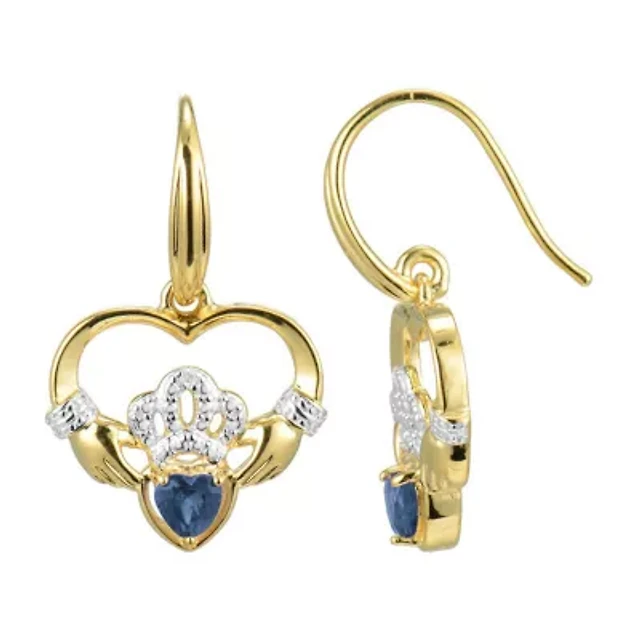 Heart-Shaped Genuine Blue Sapphire and Diamond-Accent Claddagh Earrings