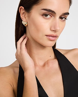 A modern statement gold earring, these heart-shaped studs are complete with a post back and are the perfect finishing touch for any slicked-back hairstyle.