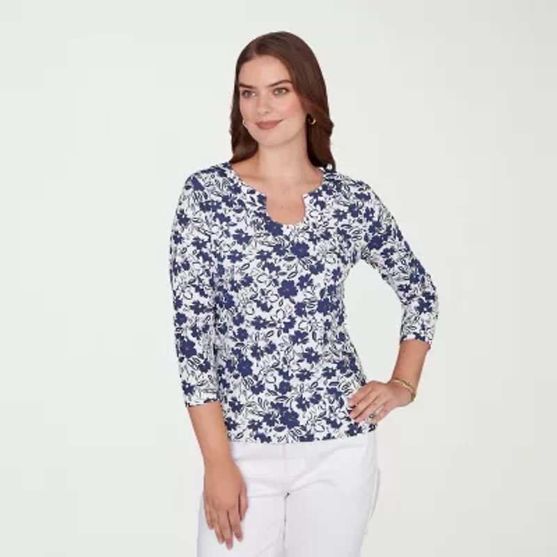 Hearts Of Palm Floral Horseshoe Womens Split Crew Neck 3/4 Sleeve T-Shirt in Chattanooga, TN