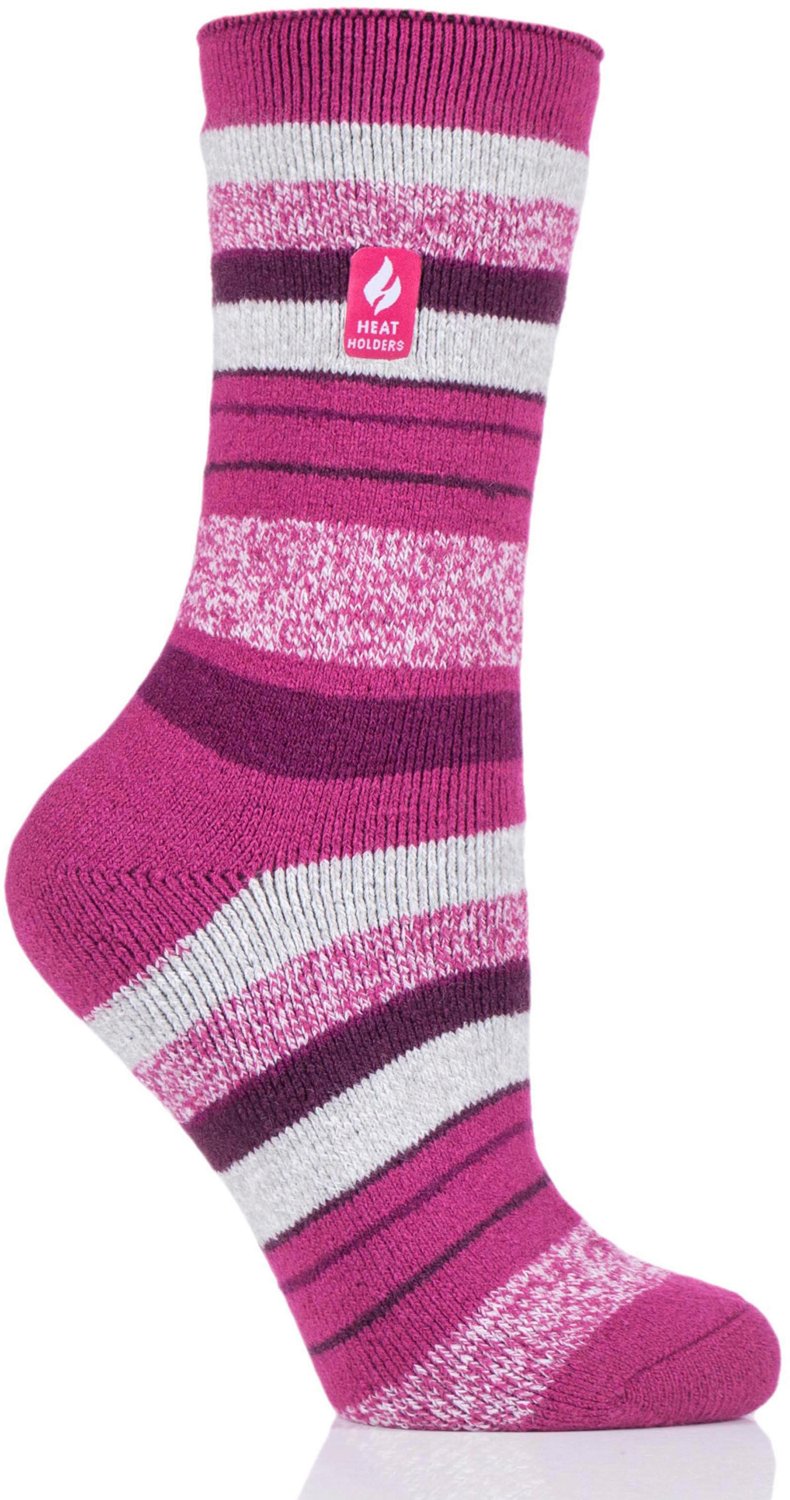 Keep your toes warm with the Heat Holders Women's Lite Peony Multistripe Crew Socks. The advanced thermal yarn offers warmth, and the fiber composition of 93% acrylic, 6% polyester and 1% elastane retains heat. The non-binding design is diabetic friendly, increasing circulation, and the brushed interior provides a soft feel.