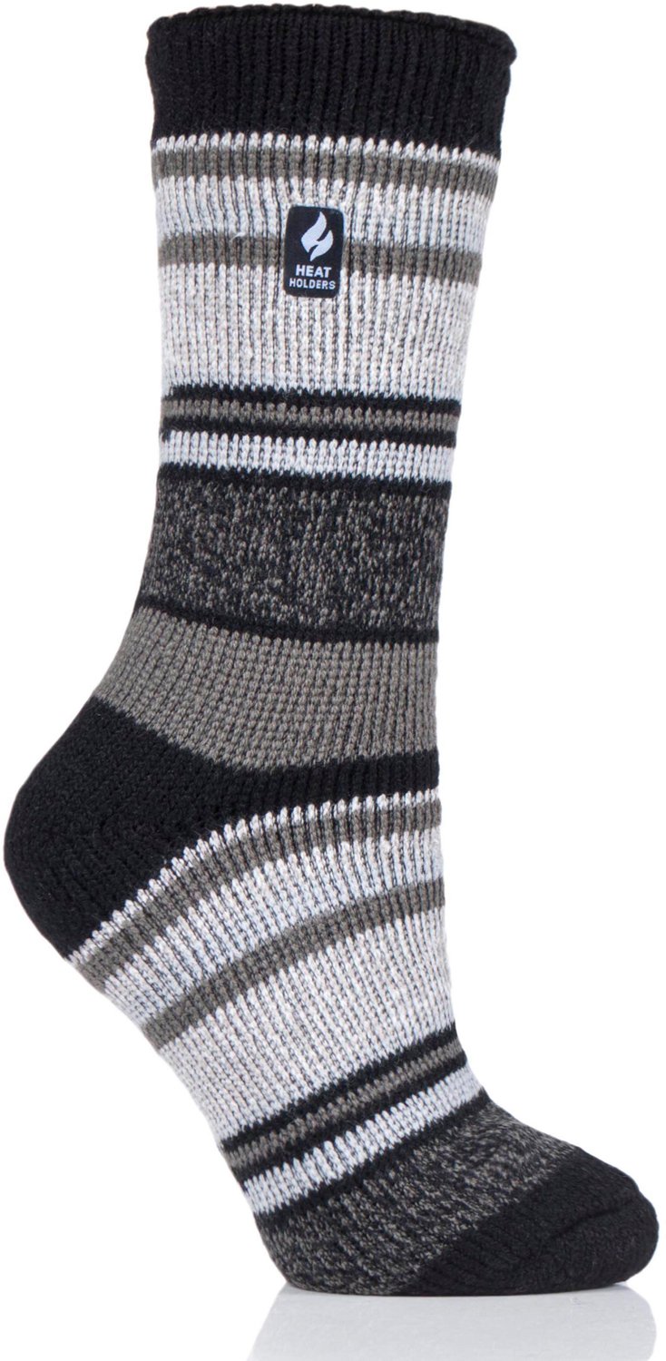 Keep your toes warm with the Heat Holders Women's Yasmine Multistripe Crew Socks. The material composed of 91% acrylic, 5% nylon, 3% polyester and 1% elastane offers warmth, and the brushed yarn traps warm air close to the skin. The non-binding design is diabetic-friendly for relief and circulation.