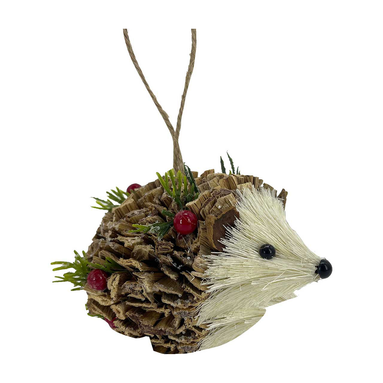 Add a touch of woodland charm to your holiday decor with our delightful Hedgehog Holly Bottle Brush Ornament. This adorable ornament is designed to bring a cozy, rustic feel to your Christmas tree, mantel, or holiday displays. Crafted with meticulous attention to detail, this charming hedgehog features a body made from natural, textured materials that mimic the appearance of pinecones and bark, giving it an authentic forest look. The hedgehog's face and underbelly are crafted from soft, bottle brush bristles, adding a whimsical touch that captures the essence of this cute woodland creature. Adorned with sprigs of holly and bright red berries, this hedgehog ornament adds a festive flair to its rustic design. The vibrant greenery and berries contrast beautifully with the natural tones of the hedgehog, making it a standout piece on your Christmas tree or holiday wreath. This lightweight ornament is easy to hang with the attached jute twine loop, ensuring it stays securely in place throughout the holiday season. Its compact size makes it a versatile addition to your holiday decor, perfect for small or large trees alike. Whether you're looking to enhance your rustic holiday theme or searching for a unique gift for an animal lover, the Hedgehog Holly Bottle Brush Ornament from pOpshelf is the perfect choice. Embrace the magic of the season with this enchanting ornament that brings the beauty of the forest into your home.