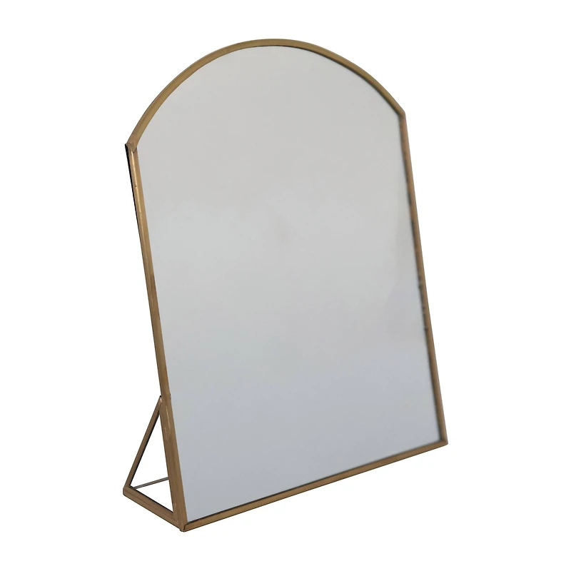 This dapper metal-framed standing mirror with a brass finish is functional and a smart find. It is a charming accent for any living room, bathroom, office, or bedroom and incorporates effortlessly with a wide range of styles.Details:Brass7.75'' x 2'' x 9.75''MetalFor indoor use