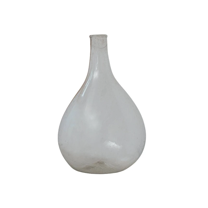 This glass bottle vase is a blend of functionality and aesthetic appeal. Its 12-inch height and 7.5-inch diameter make it an ideal choice for those who appreciate understated beauty. Details:Clear7.5" x 12"GlassFor indoor use