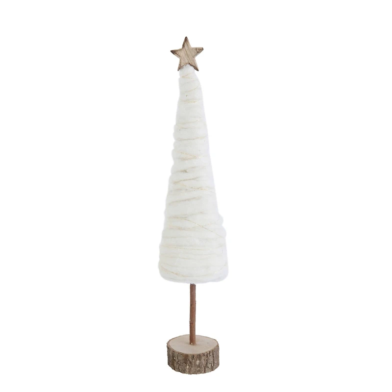 Pair this Christmas tree with mini presents, candles, or ornaments. It's perfect for creating a fun holiday vibe.Details:White4" x 4" x 18"Wool and MDFFor indoor use