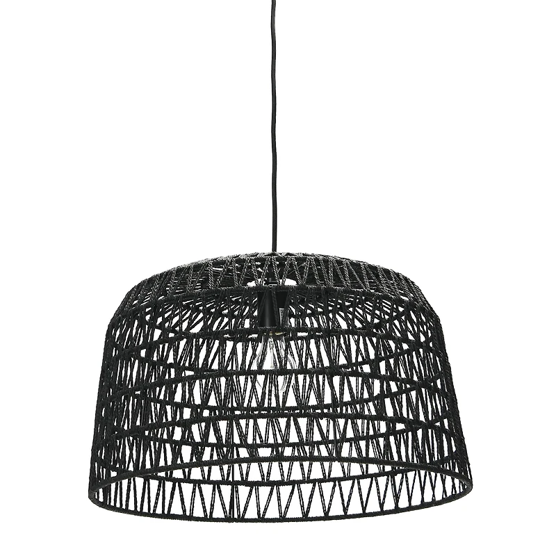 This beautiful pendant lamp is the perfect way to add a touch of boho style to any space. With an iron frame wrapped in natural colored paper, this pendant creates a textural, neutral centerpiece for your room.Details:Charcoal gray19.6" x 19.6" x 11.8"ron and paper constructionFor indoor use
