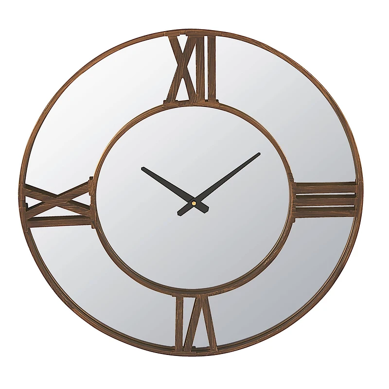 The simplistic yet elegant design of the metal wall clock mirror makes it the perfect statement piece for a Minimalistic style space. The mirror element combined with the antiqued bronze finish trim radiates glamour with a hint of modern industrial.Details:Antique bronze finish23.5'' x 2.75'' x 23.5''MetalFor indoor use