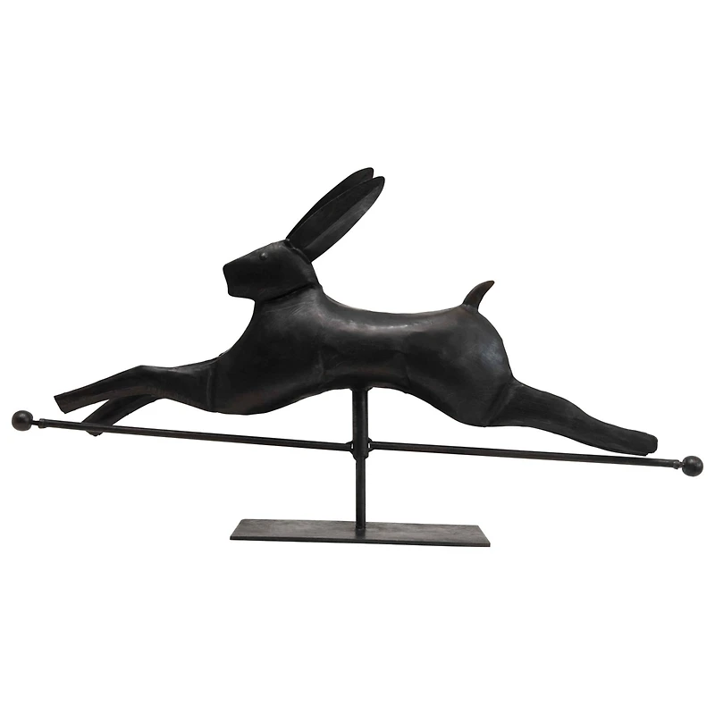 With speed on its side, this rabbit looks as though it is on the run. Place it on a flat surface with a row of small potted plants in front of it. It will create a fun scene with the appearance that the rabbit is leaping over the top of the plants.Details:Black17" x 6" x 30"For indoor use