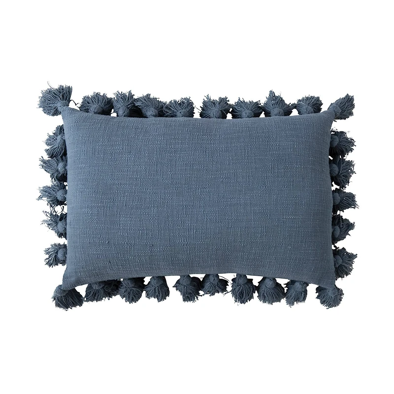 Hello Honey® Blue Woven Cotton Slub Lumbar Pillow with Tassels