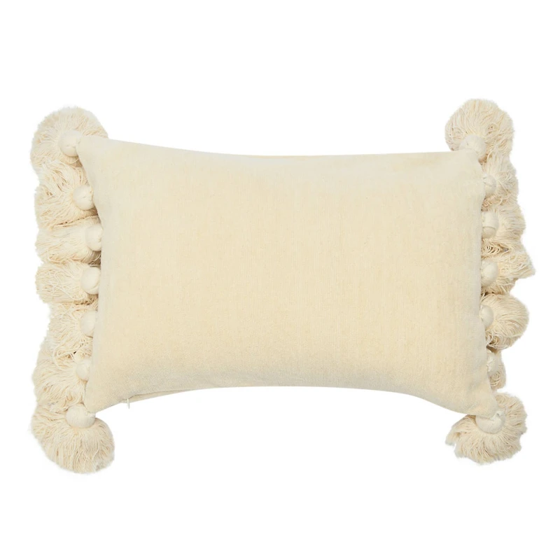 Add a dash of modern boho sophistication to a bed or living room sofa with this elegant pillow. With sumptuous cotton chenille and whimsical tassels, it is the ultimate plush accent. This playfully modern pillow showcases supple cotton chenille and soft decorative tassels.Details:Cream20" x 14"CottonFor indoor use only