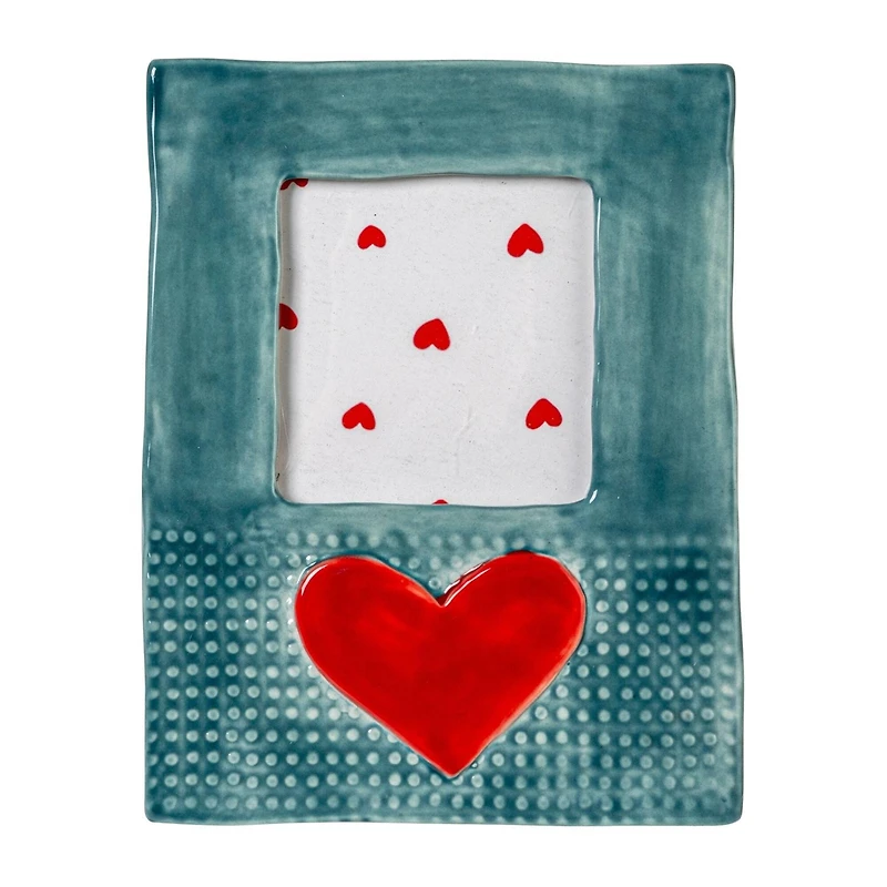 Hello Honey® Handmade Stoneware Photo Blue Frame with Red Heart