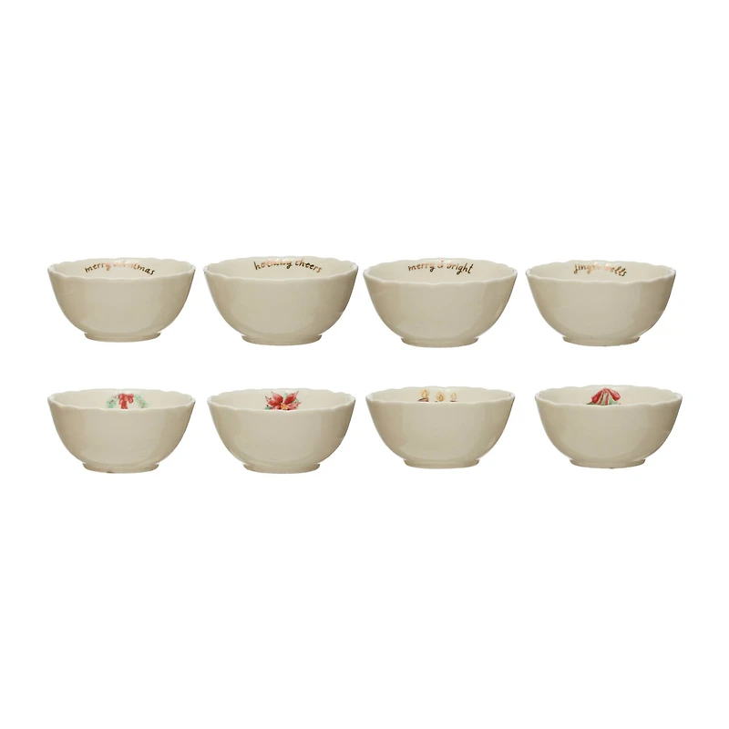 Step into the charming world of "Vintage Christmas," a holiday décor collection that showcases contemporary takes on retro images and themes. Each décor piece breathes new life into nostalgic silhouettes, adding a touch of sparkle and color to create a warm and cozy ambiance. Rich in texture and versatile in design, this collection offers a playful touch for any space, no matter the style. Prepare to be transported to a bygone era, where Christmas is centered around love, laughter, and making memories. This collection is perfect for those who appreciate the beauty and simplicity of vintage design, with a modern twist. Let this collection inspire a sense of nostalgia and wonder, and make this holiday season truly unforgettable. This set of bowls features a stoneware construction with a holiday greeting and comes in 4 different styles. Elevate holiday gatherings with our delightful collection of festive dinnerware, featuring whimsical designs and premium materials that will inspire delicious treats and delectable feasts. Each holiday décor item is carefully crafted with the utmost attention to detail to ensure that it will be cherished for years to come. Details:Multicolor design4.5" x 4.5" x 2.25"Set of 4100% stoneware