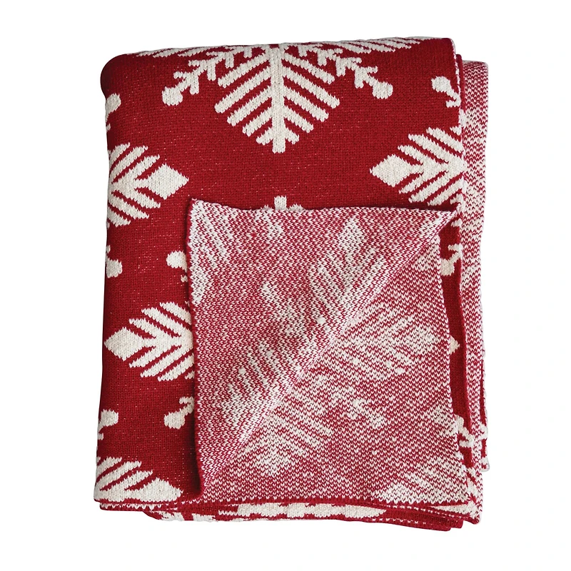 Step into a winter wonderland with the "Christmas Market" collection of holiday décor. Inspired by charming Christmas tree farms and mountain town bazaars, this collection captures the essence of places where the holiday season is celebrated all year long. This cheerful two-sided cotton knit throw blanket features a snowflake design in contrasting festive hues. Each holiday décor item is carefully crafted with the utmost attention to detail to ensure that it will be cherished for years to come. Details:Red and white snowflake pattern60" x 50" x 0.25"Cotton and polyesterFor indoor use