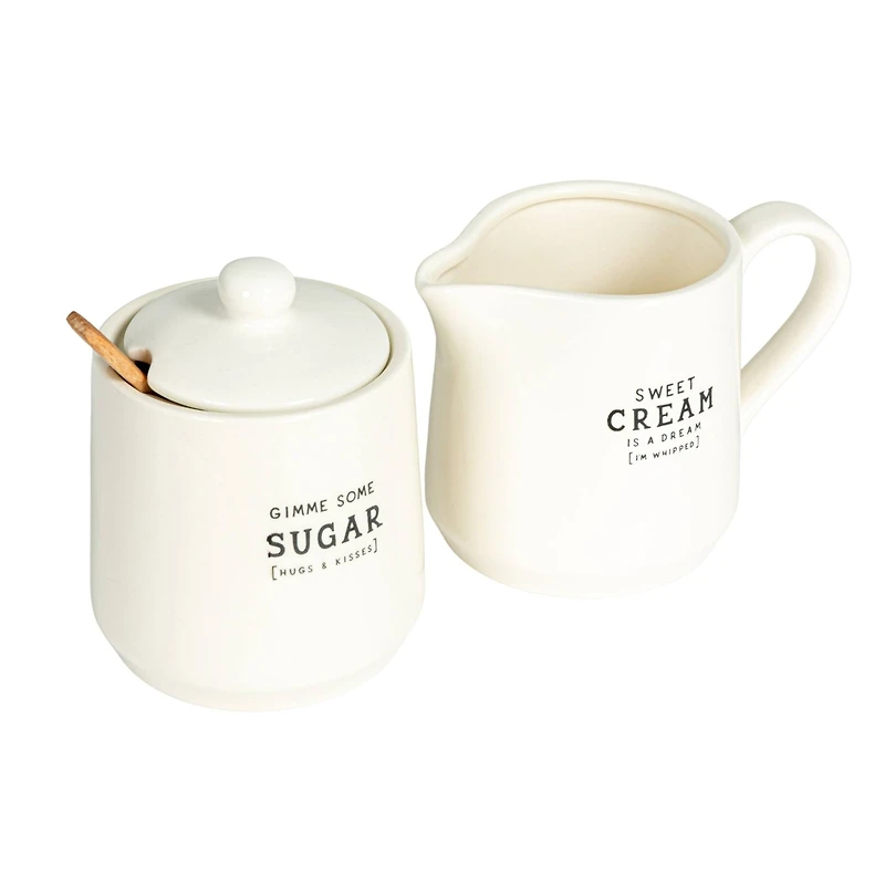 Hello Honey® White Charming Stoneware Creamer & Sugar Pot Set with Spoon