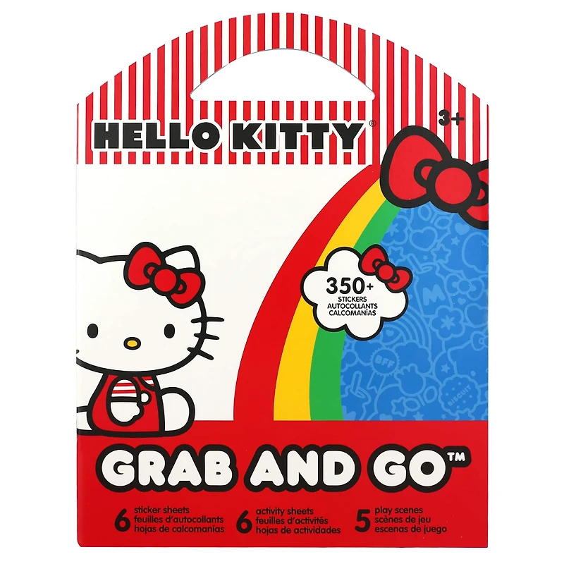 Now you can bring the fun with you with this Grab and Go sticker activity set! Featuring a Hello Kitty theme, this set has stickers, activity sheets and play sheets you and your kiddo can play with, all in a compact package with a handle for easy portability!