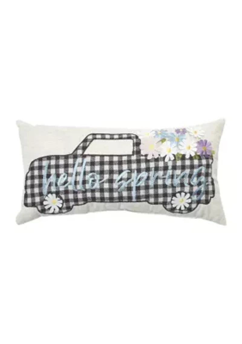 A gingham-patterned truck embellishment that reads "hello spring" characterizes this throw pillow from Arlee Home Fashions Inc.™. Imported Product Specifications 10'' L x 20'' W Material & Care Polyester Spot clean only