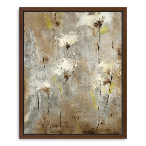 Florals breathe new life into a space! The abstract style of this Here Today, Gone Tomorrow Framed Canvas Art Print will bring a refreshing essence to your home! Framed print measures 26L x 1.75W x 32H in. Giclee printed on stretched canvas Walnut wood frame around wrapped canvas Abstract floral subject Hues of gray, brown, white, and green Weight: 8.9 lbs. Hangs from back-mounted hardware Care: Dust with a soft, dry cloth. Avoid exposure to heat, sunlight, and moisture. This item is available at Kirklands.com only, not available in stores. Please note: this item cannot be shipped to APO/FPO addresses.