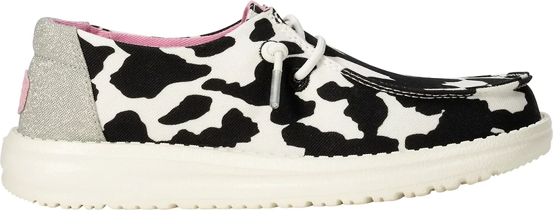 Show off her stylish side with the HEYDUDE Girls' Wendy Cowgirl Sparkle Shoes. These lightweight shoes have canvas print uppers and foam insoles for supportive cushioning and all-day comfort. Durable outsoles offer flexibility, and the easy-on system makes it easy for little ones to take them on and off. Glitter heels and the color pop linings add a fun look.