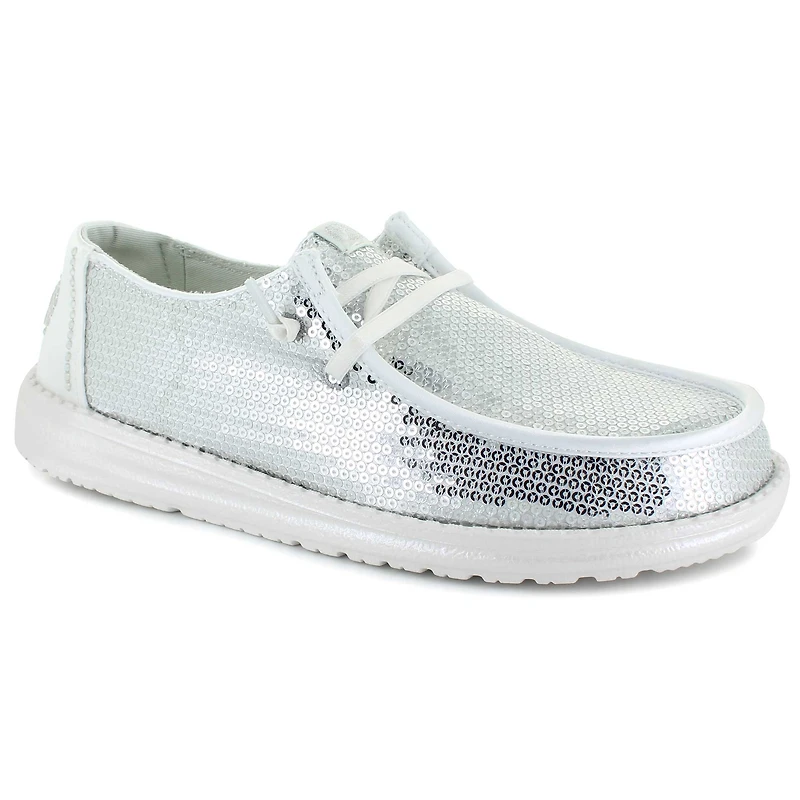 Dance the night away with signature HEYDUDE construction in the Wendy Disco Sequin. Crafted with a lightweight foam outsole, top it off with a textile upper and stretchy elastic laces to keep the party going.