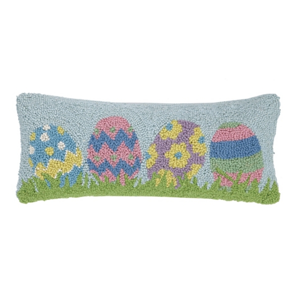 Add gorgeous holiday style to your home with this Easter decoration. The Hidden Eggs Easter Lumbar Throw Pillow has a unique look you're sure to love. Pillow measures 20L x 8H in. Crafted of wool and cotton with polyester fill Hues of white, green, blue, yellow, and pink Easter egg design Zipper closure Care: Spot clean only. This item is available at Kirklands.com only, not available in stores. Please note: this item cannot be shipped to APO/FPO addresses.