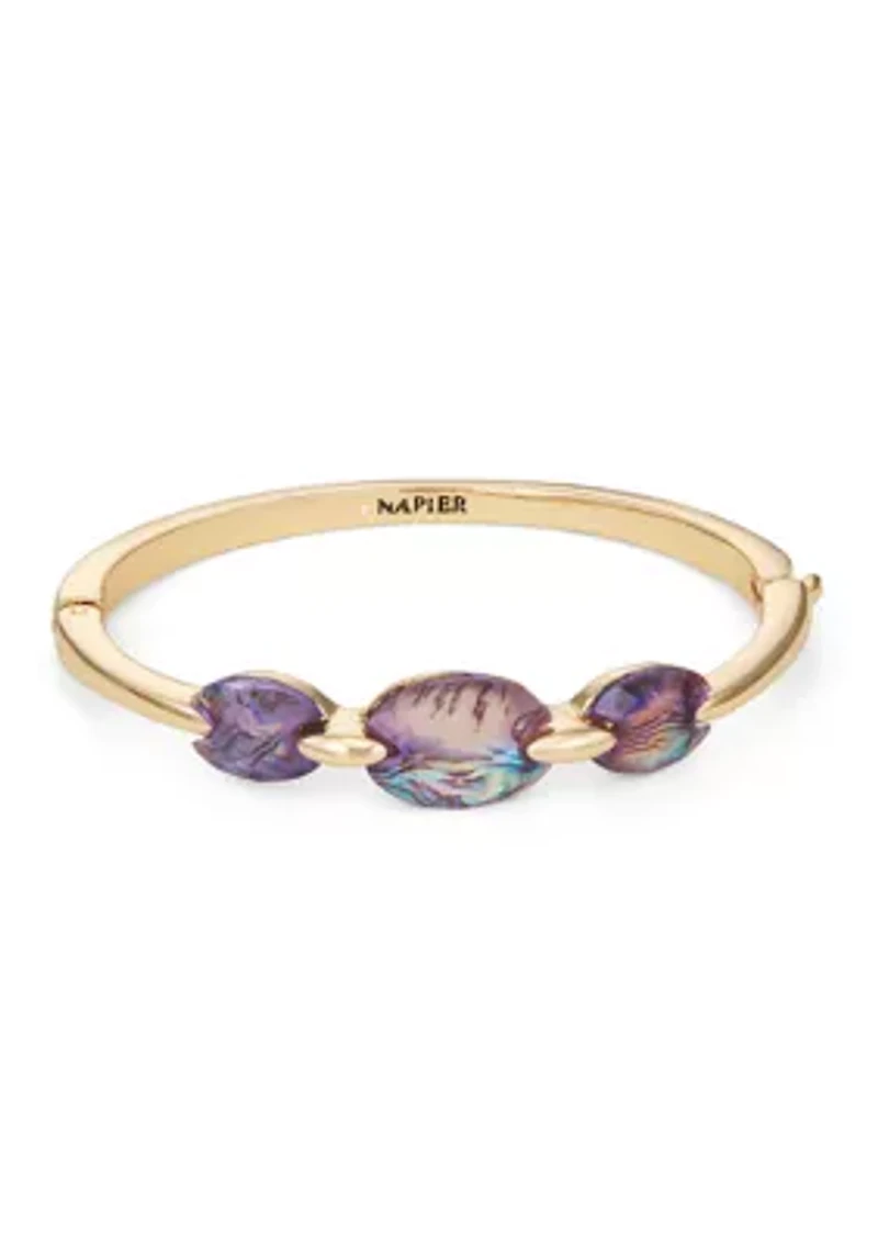 Shine beautifully on any occasion when you wear this glamorous bangle bracelet from Napier. Hinge closure Polished finish Imported Product Specifications 2.5" D Material & Care Gold-tone metal or silver-tone metal Clean with a soft cloth