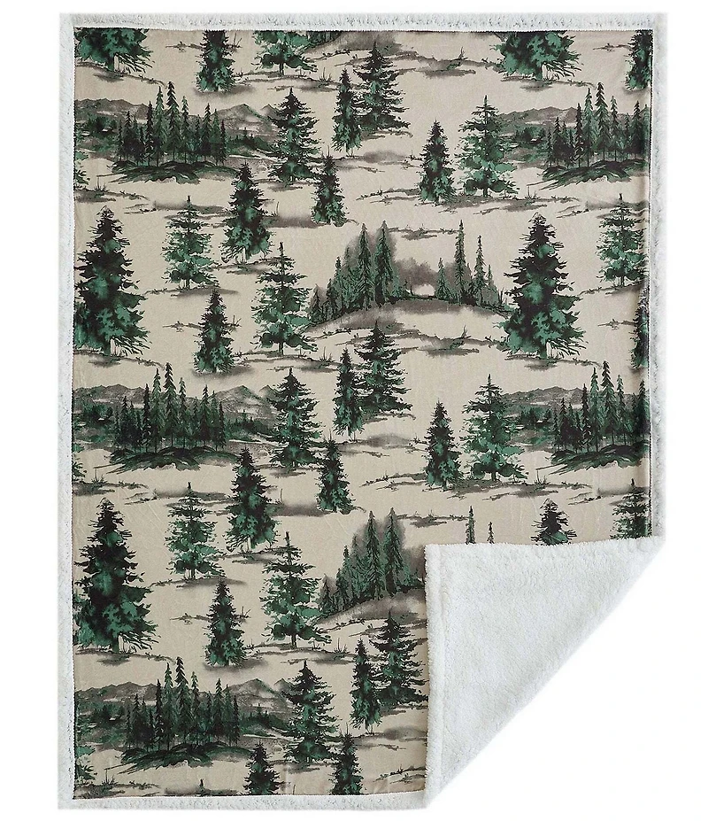From the Campfire Throws Collection by Indigo Hill by HiEnd Accents, this throw features: An elegant forest pattern and inviting palette of greens hues front Crafted from a plush sherpa material reverse Front: Polyester Back: Polyester (Sherpa Fabric) Approx. 54" W x 68" L Machine wash cold, gentle cycle, tumble dry low. Perfect for home relaxation or campfire camaraderie, it offers limitless utility Warm, stylish, and budget-conscious, this throw is an essential addition to our Campfire Throws Collection. Imported.