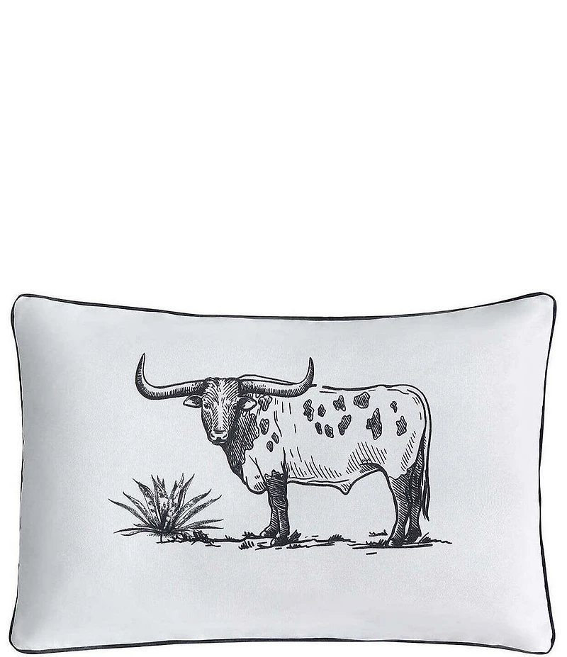 From Paseo Road by HiEnd Accents, this pillow features: Depicts a Texas Longhorn Steer in the center Finished with black piped edges for a refined touch Zipper closure A versatile black-and-white colorway Cover and fill: 100% polyester Reveres to a striped pattern Suitable for indoor and outdoor use Approx. 16" W x 24 "L Complement with our Ranch Life Quilt Set and coordinating pillows to complete a stylish and modern Western or Southwestern ensemble Machine wash cold. Tumble dry low. Do not iron Imported.