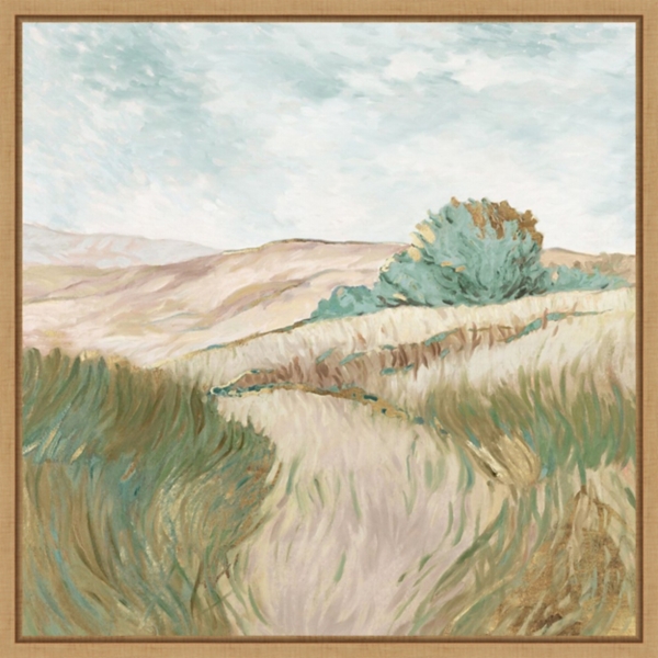 Bask in the soft fields of the High Season Framed Canvas Art Print. You'll love the way the warm breeze flowing through grasslands will look on your wall! Overall dimensions Width: 22 in. Depth: 2 in. Height: 22 in. Distinctively printed on stretched canvas Natural frame around wrapped canvas Uses fade-resistant ink Features a landscape subject Hues of blue, green, and tan Artist: Graham Reynolds Weight: 2.75 lbs. Hangs from back-mounted hardware Care: Dust with a soft, dry cloth. This item is available at Kirklands.com only, not available in stores. Please note: this item cannot be shipped to APO/FPO addresses.