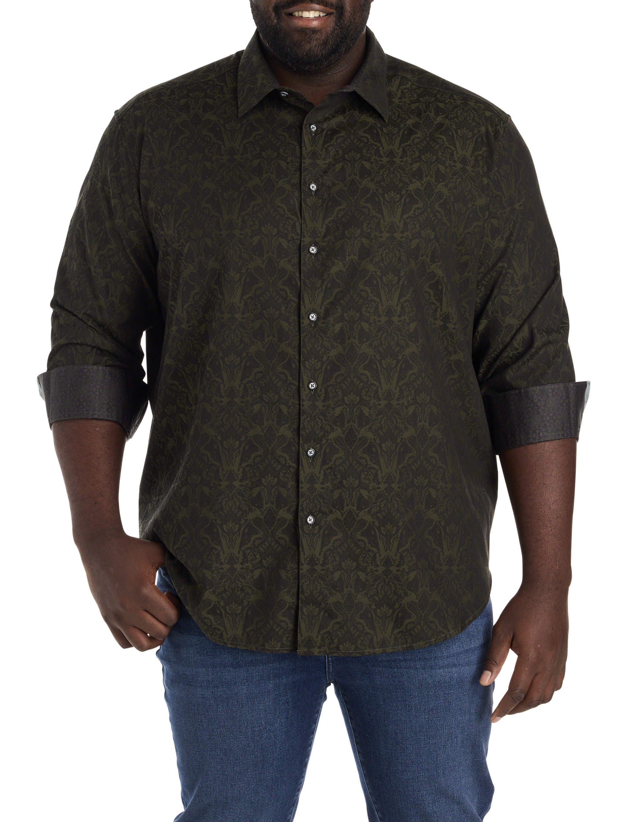 Introducing Robert Graham's newest essential jacquard, The Highland. A damask motif is celebrated on this long-sleeve sport shirt. Crafted in soft cotton with a touch of stretch for ease, it's comfortable to wear and gives you the freedom to move without restriction. Plus, it's designed with the expert craftsmanship and attention to detail that you'd expect. Flip the collar and cuffs to reveal a contrast #WearableArt print.