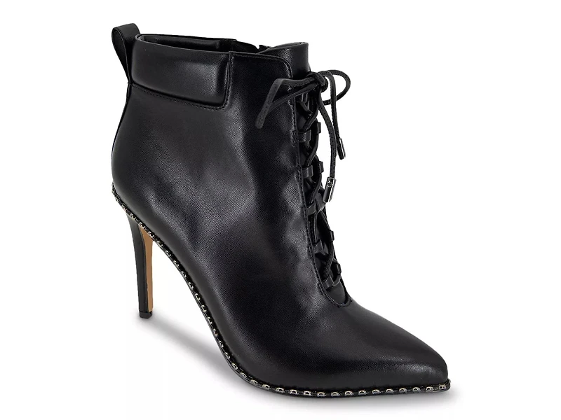 Lace-up the BCBGeneration Hinna bootie for a statement making look. Pointed toe and ball chain welt detail accentuate the look of this bootie designed with a sky-high stiletto heel for a striking appeal.